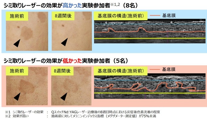 第43回日本美容皮膚科学会【発表2】 2025/09/29 展示会・学会 LINEで送る Tweet 第43回日本美容皮膚科学会で発表された、アピアランスビューティークリニックの堀口和美院長とコーセー先端技術研究所との共同研究結果のご報告です。美容分野からレーザーシミ治療の効果にアプローチされており、OCTの撮像技術を用いて基底膜の凹凸の可視化し、下図のような発表がありました。 コーセー 研究ページ PR Times X 『deepLiveTM』有効性を発表いただいたコーセー研究者の皆様、ありがとうございました。 医療と美容の共同作業が、健康的で美しい肌の実現に役立つことでしょう。期待値max! LC-OCT deepLiveTM お問い合わせはこちらから LINEで送る Tweet